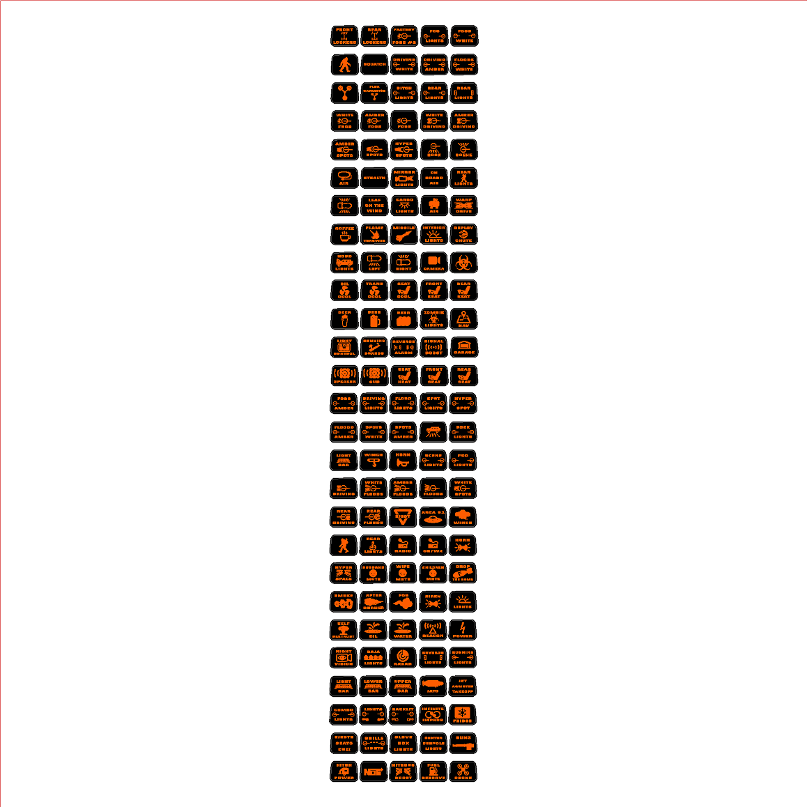 Printed Series Auxiliary Switch Labels (Upfitter) - 2021+ Bronco / F-150 Tremor / F-150 Raptor / Ranger Tremor / 2023+ Super Duty / 25+ Bronco Sport